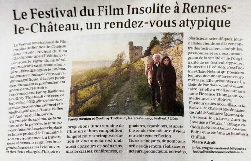 Depuis plus de dix ans, Fanny Bastien et Geoffroy Thiebaut portent avec passion le Festival International du Film Insolite de Rennes-le-Château, un rendez-vous unique en son genre, ancré dans un lieu chargé de mystères et d’histoire. Comédiens et artistes engagés, ils ont imaginé ce festival comme un pont entre le cinéma, la poésie et le patrimoine, où l’inattendu devient source d’émotion et de réflexion.